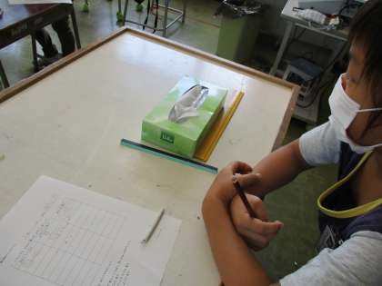 2枚目の写真は、ティッシュの箱の長さを測っています。