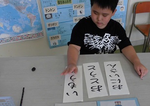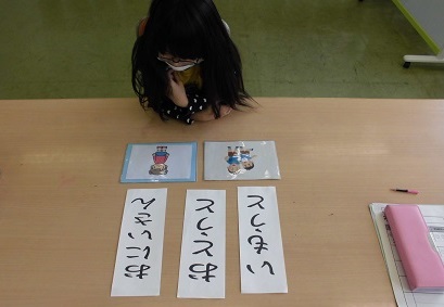 「べんきょう」「ぼうし」「すいとう」...身の回りには、たくさんの「のばす音」があります。進んで言葉集めをして、語彙を広げました。