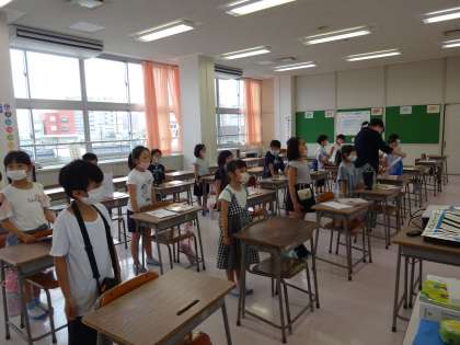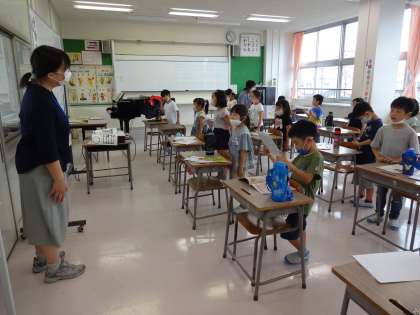 校歌を歌った子供たちに、音楽専科の先生が、お褒めの言葉をくださいました。