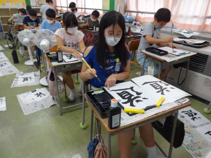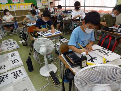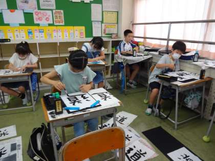 穂先の向きや、しんにょうのはらい方等、自分で目当てをもって、真剣に取り組むので、着実に上達しています。