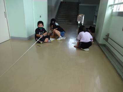 巻き尺を使って、いろいろな物の長さを正しく測るための体験学習です。