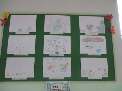 2年生の掲示物です。懇談会に来られましたら、是非子供たちの作品をご覧ください。