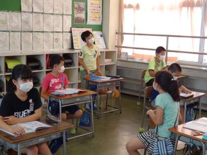 絵カードを見ながら、○○をしているのは何曜日か、好きなのは何曜日かなど、ALTの先生からの質問の答えを考え、発表しました。