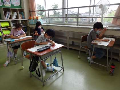 ひき算の文章題に挑戦しました。式を書き、答えを求めました。