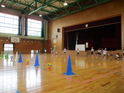 テニスボールを使って、投げたいところにボールを投げる学習をしました。腕の方向、顔の向き、ボールの持ち方に気を付け、カラーコーンやボールを目がけてたくさん投げました。