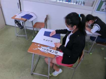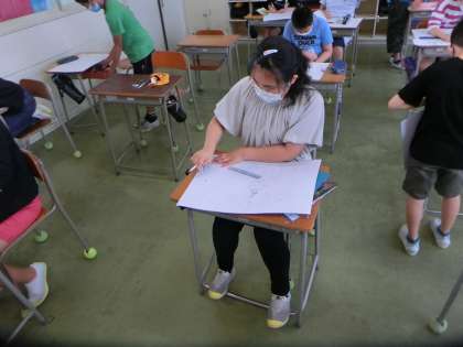 7/6(月) 6年生 「どのレタリングだったら見ている人に伝わりやすいかな?」