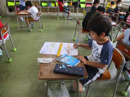 算数科の学習で、「長さの」確認テストを行いました。30cmものさしを使用して、直線の引き方や長さの測り方を復習しました。