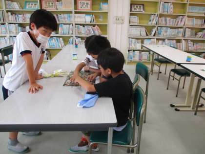 子供たちは外で遊べないなか、休み時間を工夫して過ごしています。本を読んだり、絵を描いたりするなど、、室内で遊べる遊びをしています。有意義に時間をつかっています。