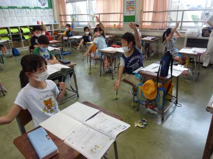 「150と80+50は、どちらが大きいでしょう。体で表現してみましょう。」