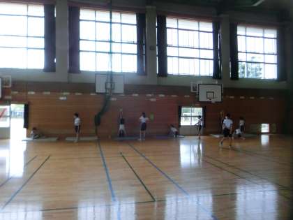 視線を意識し、懸命にかべ倒立に取り組む子供たちでした。