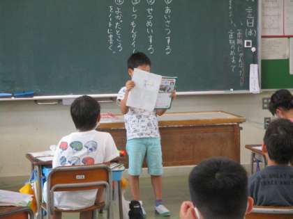 今日の国語科の授業では、「あったらいいな〜」の発表会をしました。発表者は道具の名前と道具の使い方、その道具があったらいいわけを発表しました。