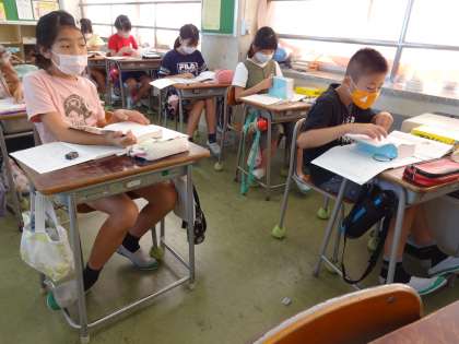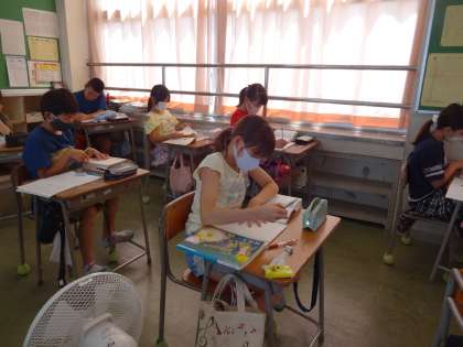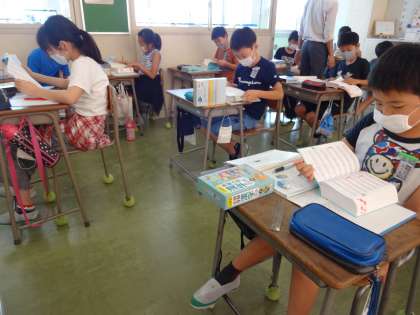 同じ読み方の漢字の授業です。全員で同音異義語を学習した後、各自が漢字辞典を使い、同訓異字を探して、ノートにまとめました。