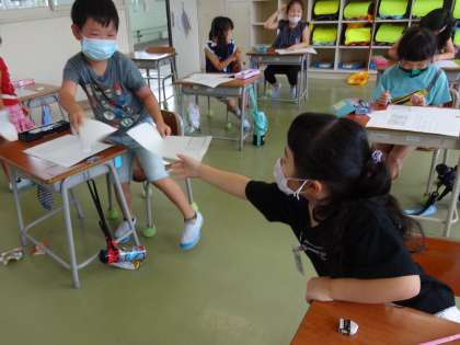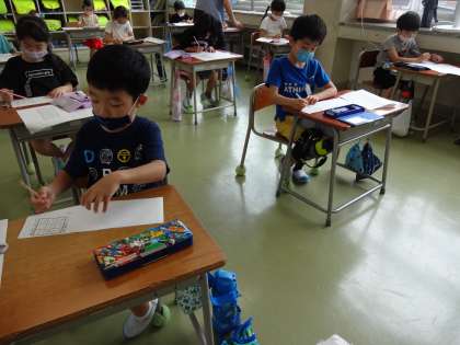 子供たちは、友達と一緒に言葉遊びを楽しみました。