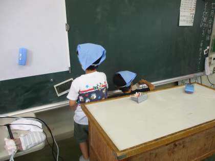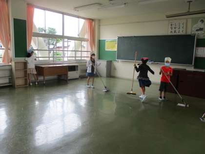 「机をみんなで運ぼう。」「私がモップをする。」「僕がほうきをする。」など、互いに声を掛け合いながら清掃をする2年生でした。