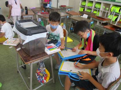 子供たちは、生き物の特徴をとらえて観察することができました。
