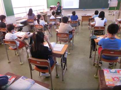 外国語科の学習で、一学期の外国語科でしてきたことを振り返った6年生。