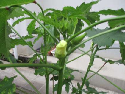中庭には3つの野菜が植えられています。この写真はその一つのある野菜の花です。わかるかな?また、中庭をのぞいて見てくださいね。