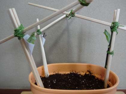 全てのさなぎが無事に羽化するように、さなぎポケットやつかまる棒(割り箸)を作りました。