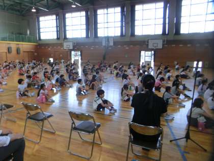 始業式の準備に取り組む6年生。
