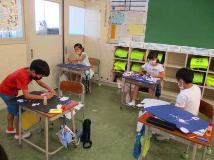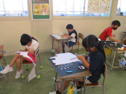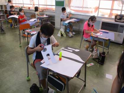 はさみアートを行いました。はさみの使い方を工夫しながら製作する学習です。