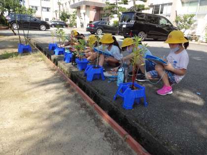 葉や茎の長さを測る子、花や葉の枚数を数える子、色をよく観察する子など、様々です。