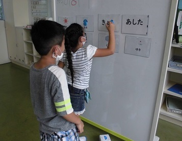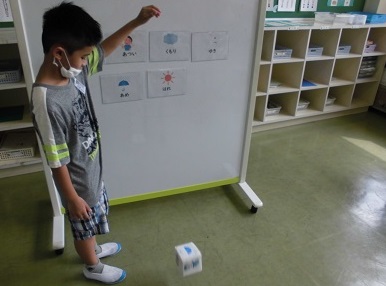 さいころゲームをしながら、「今日」「明日」や天気を表す言葉を学習しました。楽しく言葉を覚えることができました。