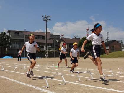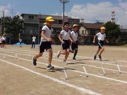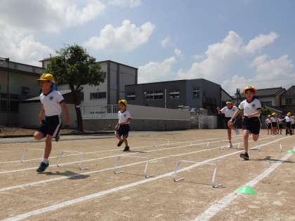 50mハードル走に挑戦しました。ハードルは、柔らかい素材のミニハードルを使用しました。