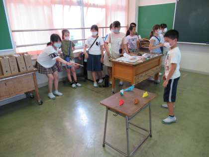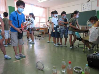 集会係の企画で5−1夏祭りを開催しました。集会係の人たちが作った「輪投げ」「射的」「ボーリング」等の縁日を楽しみました。