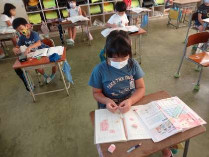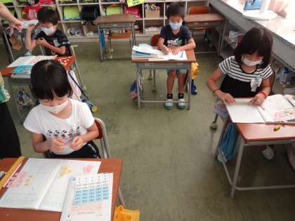 1・10の数字カードをノート上に並べながら、筆算の仕方を考えました。