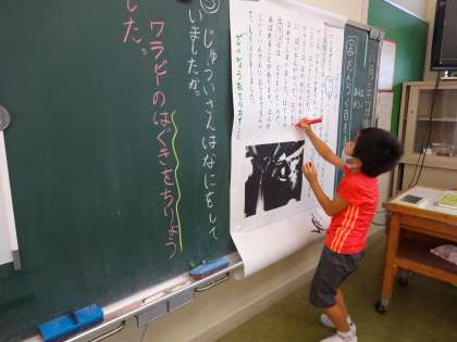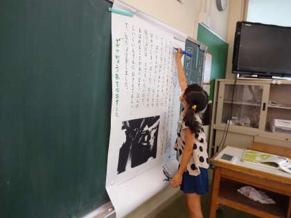 説明文「どうぶつ園のじゅうい」の5場面を読み、時間の流れとともに獣医がどのようなことに取り組んでいるかなど、内容を捉え、まとめました。