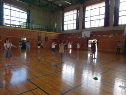 5年生も、3年生と共に、体育館で広がって、軽快に運動しました。
