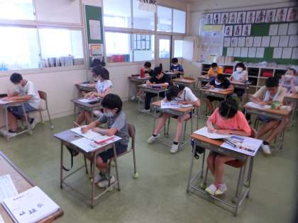太陽と月の場所を確認しながら問題に取り組む子供たちでした。