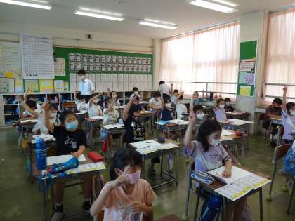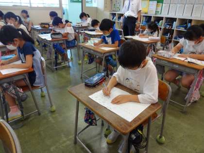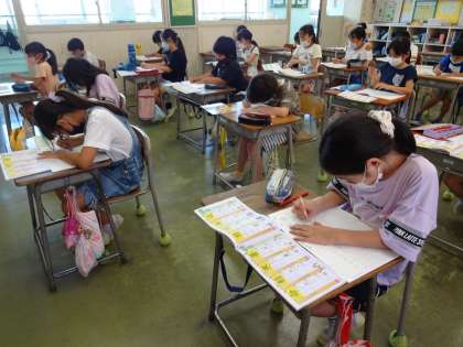 ドリルに書く前には、読み方や筆順を学び、空書きもしました。