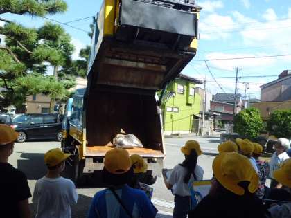 最後にパッカー車の見学をし、普段見ることのできない内部の構造や仕組を見せてもらい、とても驚きました。