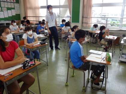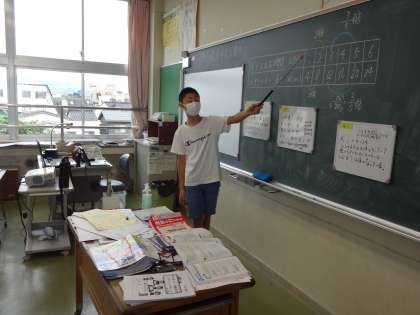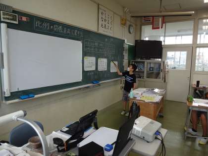 「水を入れる時間」と「水槽の水の深さ」との関係をどのように式で表したらよいか、考えて、発表しました。