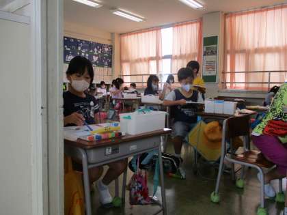 始めに下書きをして、絵の具で色を加えていきました。花びらの模様等の特徴を捉えて下書きしたり、色を作ったりしました。