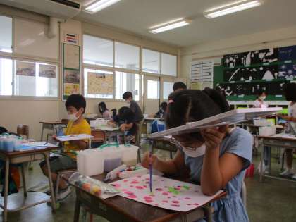 中庭やグラウンドにある自然の写真を見て学習を進めました。