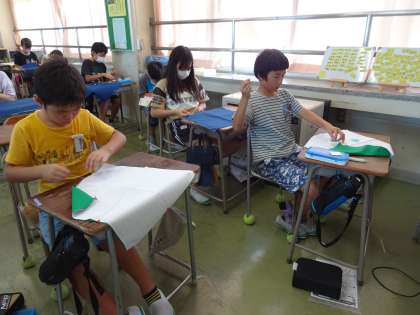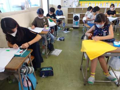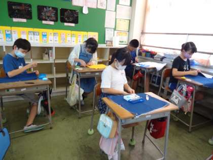 ティッシュカバーを製作中です。この製作を通して、基礎縫いの技能を向上させます。
