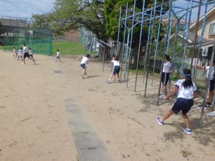 スポーツ係からの提案でサンサンタイムに鬼ごっこ大会、にこにこタイムにドッジボール大会を行いました。この「鬼ごっこ」と「ドッジボール」は、スポーツ係がアンケートを行い、人気のあったものを選んで企画しました。