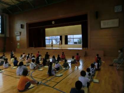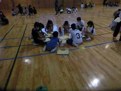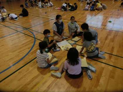 さわやか集会で、なかよし遠足での班活動の打ち合わせをした子供たち。