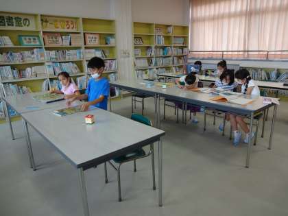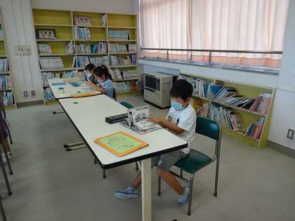 2限に図書室で読書をしました。子供たちは、読書が大好きです。読みたい本を次々に選んで、読みました。