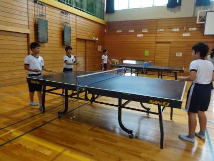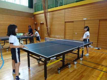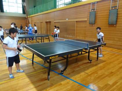 写真は、卓球クラブの様子です。バドミントンクラブと卓球クラブは、ボランティア講師の方に教わっています。