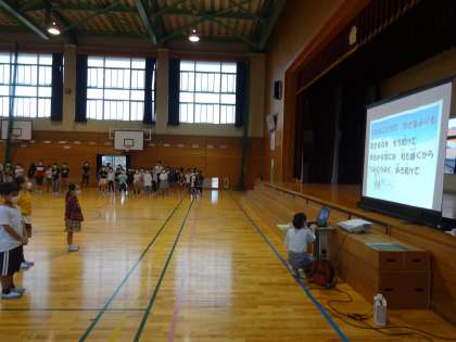 今日は、保健・美化委員会が、清掃時間のきまりを全校児童へ呼びかけました。