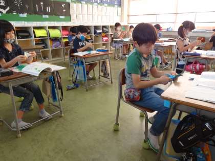 4つの角の形や、4辺の長さを調べながら、正方形の特徴をつかみました。