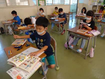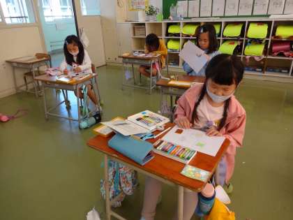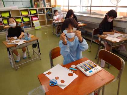 先生の描いた絵を見て、「上手だな」「先生みたいに描きたい」「本気を出すぞ」などとつぶやき、張り切って取り組みました。