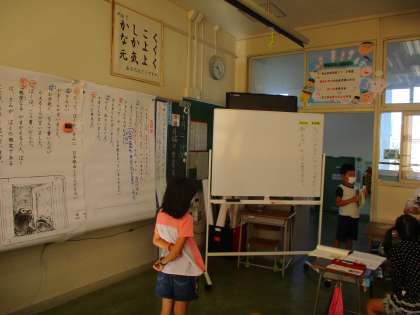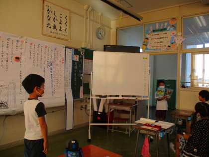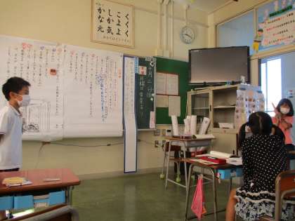 「お手紙」の物語を寸劇にして表現しました。かえるくんとがまくんが会話するワンシーンを自分なりに言葉をアレンジして、自分ならどう返答するかを考えました。