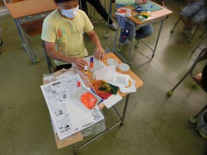 配色を考えながらカッターを器用に使い、製作に取り組む子供たちでした。