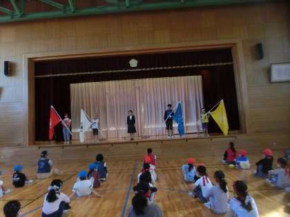 ミニ運動会に向けて、決意表明やかけ声を行う子供たちでした。