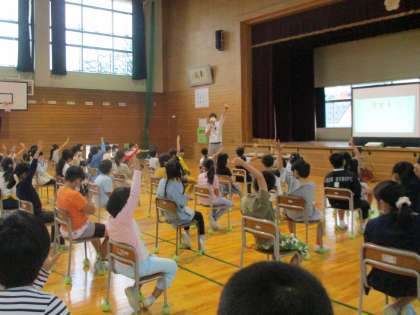 2限に、2〜4年生を対象にして、「万引き防止教室」を行いました。