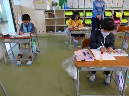 子供たちは、イメージを膨らませながら絵を描きました。